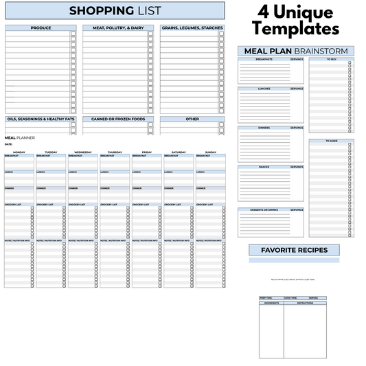 Printable Weekly Meal Planner, Recipes & Grocery List PDFs